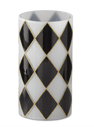 7.75 Inch Black and White Check Glass Cylinder Candle Slip Cover