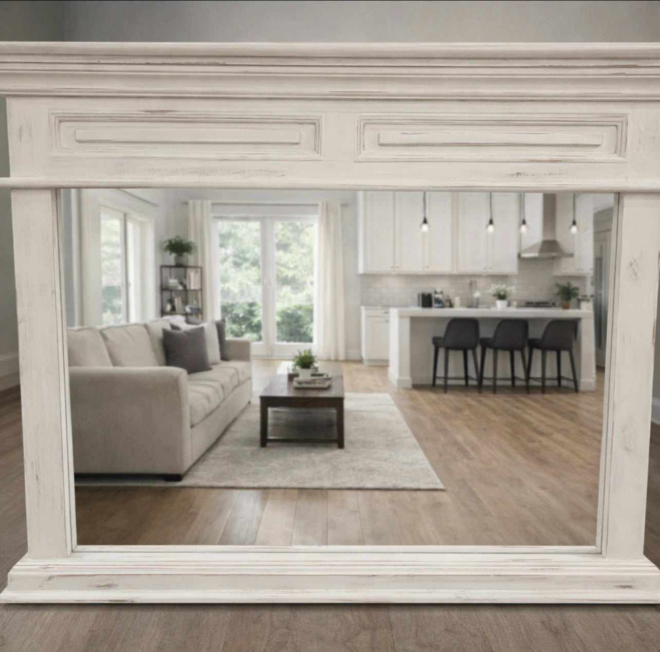 Mirrors instantly make rooms feel larger, brighter, and more inviting — and this design offers the flexibility to style it traditionally, modern, farmhouse, coastal, or transitional.