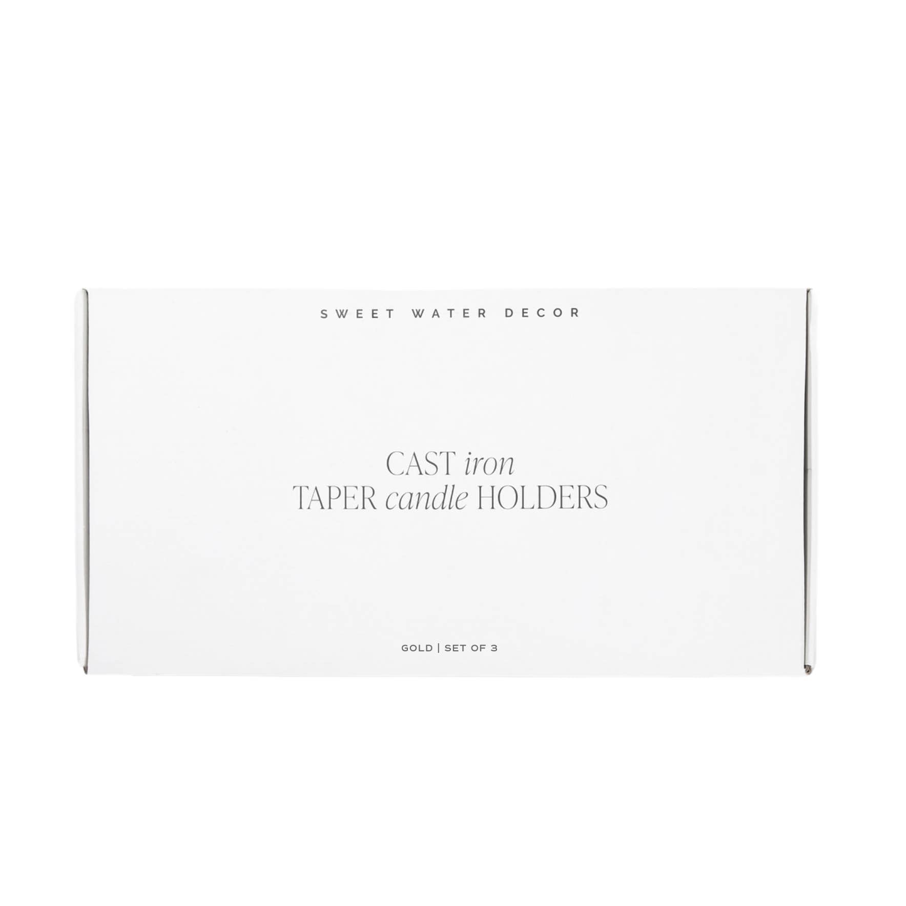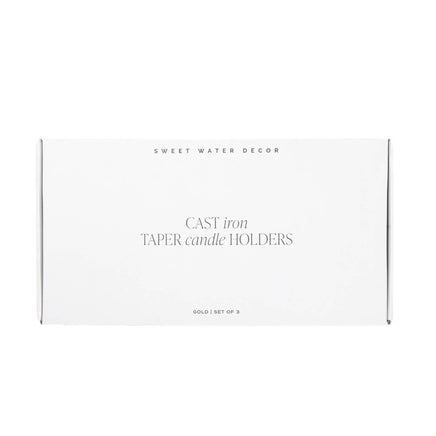 Our cast iron taper candlestick holders blend timeless design and durability, perfect for year-round styling or for Fall, Autumn. Pair with our fluted taper candles! ITEM DETAILS: • Cast Iron • Gold • Dimensions: Small: 3.35" x 12" Medium: 3.35" x 14" Large: 3.35" x 15.5" • Candles not included • Designed in the USA, Imported • Style No. CH002 ITEM CARE: • Dust with soft, lint-free, dry cloth • Melted wax can be gently scrubbed off • It is not recommended to use harsh household chemicals on product as this will tarnish the finish • Designed for interior use only TO USE: • Candle will be hot to the touch. Do not touch until cool • Burn candle within sight. Never burn candle on or near anything flammable • Keep out of reach of children and pets • Ensure holders are placed on a heat-resistant surface • Always leave at least 6" (15 cm) between burning candles • Recommended self-fit tapered candles size: 1" in diameter, up to 10" tall