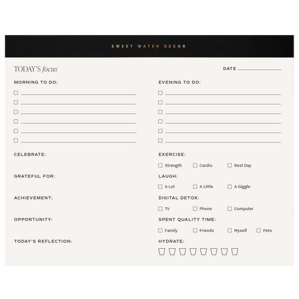Stay balanced and productive with our Self Care Notepad, a thoughtful addition to any desk or home workspace. Featuring sections for to-do lists, reflections, hydration, movement, and mindful moments, it’s designed to keep wellness and daily tasks in check.