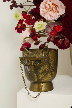 Introduce whimsical charm to your home with the Eric & Eloise Collection, designed by artist Jessica Heimstra. Crafted from recycled cast aluminum with an antique gold finish, this delightful series features a bespeckled fox, a friendly faced bear, and a bowtied mouse. Each piece adds a refined and friendly touch to your home decor. Explore the full Eric & Eloise family to deck the halls, shelves, & tables with these playful faces.