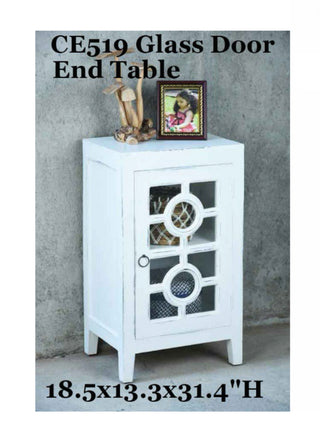 Solid wood end table with glass front door. Would be perfect as an end table or a nightstand. 18.5 x 13.3 x 31.4 with round knobs