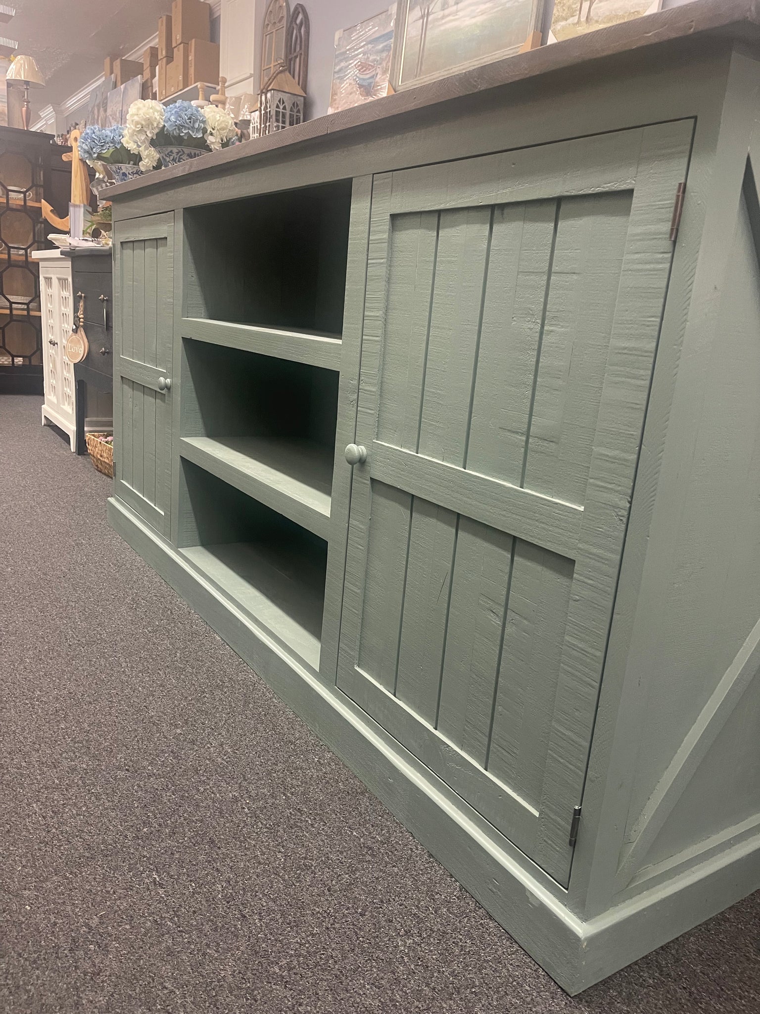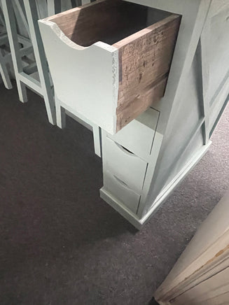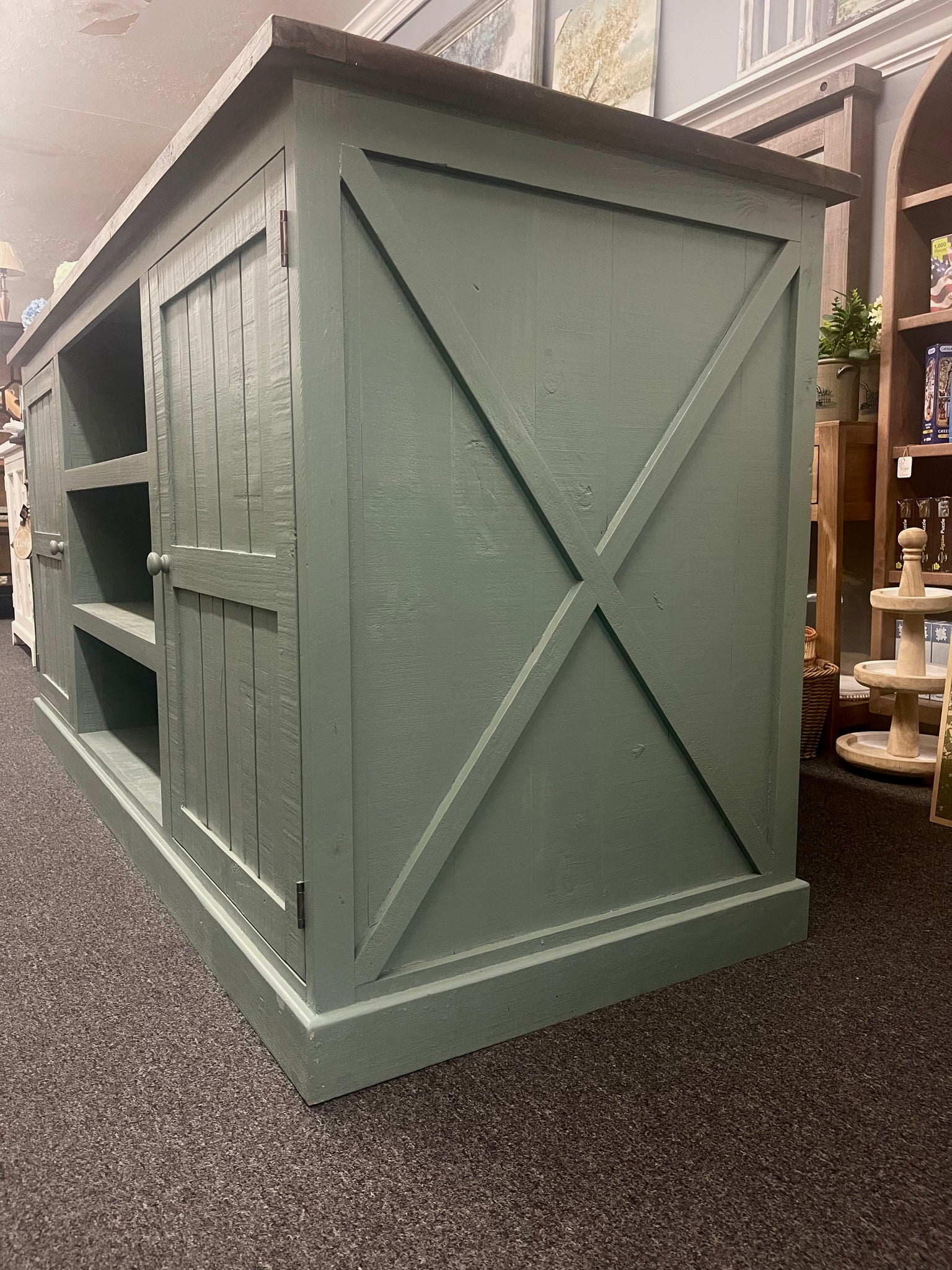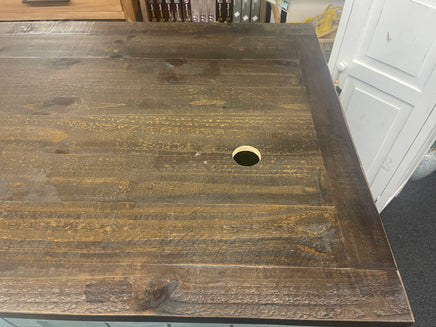 Please note this piece was used at a showroom in Atlanta so there is holes for cord access. If you do not need the hole it could be easily capped. However if you are using for an island, coffee bar, or office then the hole would be beneficial. This is reflected in the price.